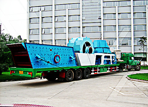 工藝流程:料倉(cāng)--振動(dòng)給料機(jī)--鄂式破碎機(jī)--制砂機(jī)--振動(dòng)篩--洗沙機(jī)--輸送機(jī)。