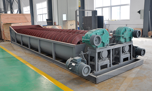 1.螺旋洗砂機(jī)主要通過(guò)物料根據(jù)重量比沉入槽低的有螺旋輸送掃槽排出經(jīng)過(guò)返砂與磨礦機(jī)形成閉路再磨,重量輕的顆粒通過(guò)槽下方排出從而達(dá)到分級(jí)效果,并且可以去除砂石表面雜志。