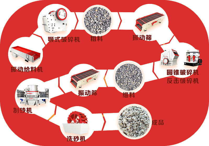 玄武巖的加工一般分為粗碎、中細(xì)碎和制砂整形三個階段