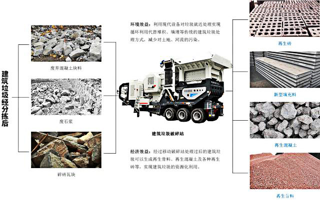 建筑垃圾被集中回收后,通過移動(dòng)破碎站設(shè)備與砂石生產(chǎn)線等處理后可以實(shí)現(xiàn)建筑垃圾再利用。建筑垃圾資源化需要社會(huì)的參與。