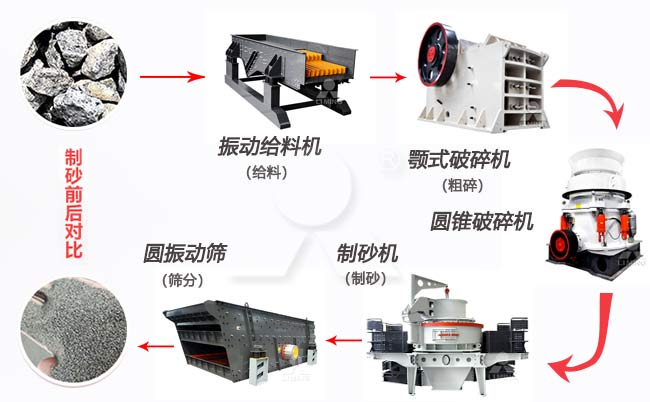上文是對(duì)整形制砂設(shè)備的簡(jiǎn)單介紹,如果石頭個(gè)頭比較大還是需要配置破碎機(jī),一整套制砂設(shè)備效率才會(huì)更高,一整套碎石整形制砂設(shè)備有: