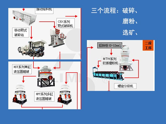 我們首先來了解一下鉛鋅礦的生產加工流程以及用到哪些設備。鉛鋅礦石的加工過程主要包括三個流程破碎、磨粉和選礦。