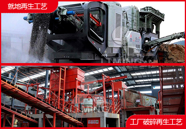 就地再生工藝是采用移動(dòng)式破碎設(shè)備在建筑垃圾現(xiàn)場(chǎng)進(jìn)行處理。這種方式的優(yōu)勢(shì)在于各種設(shè)備可以任意移動(dòng)靠近加工點(diǎn),減少運(yùn)輸成本及避免了二次污染;各種移動(dòng)設(shè)備可以根據(jù)需要相互組合,生產(chǎn)各種再生骨料。